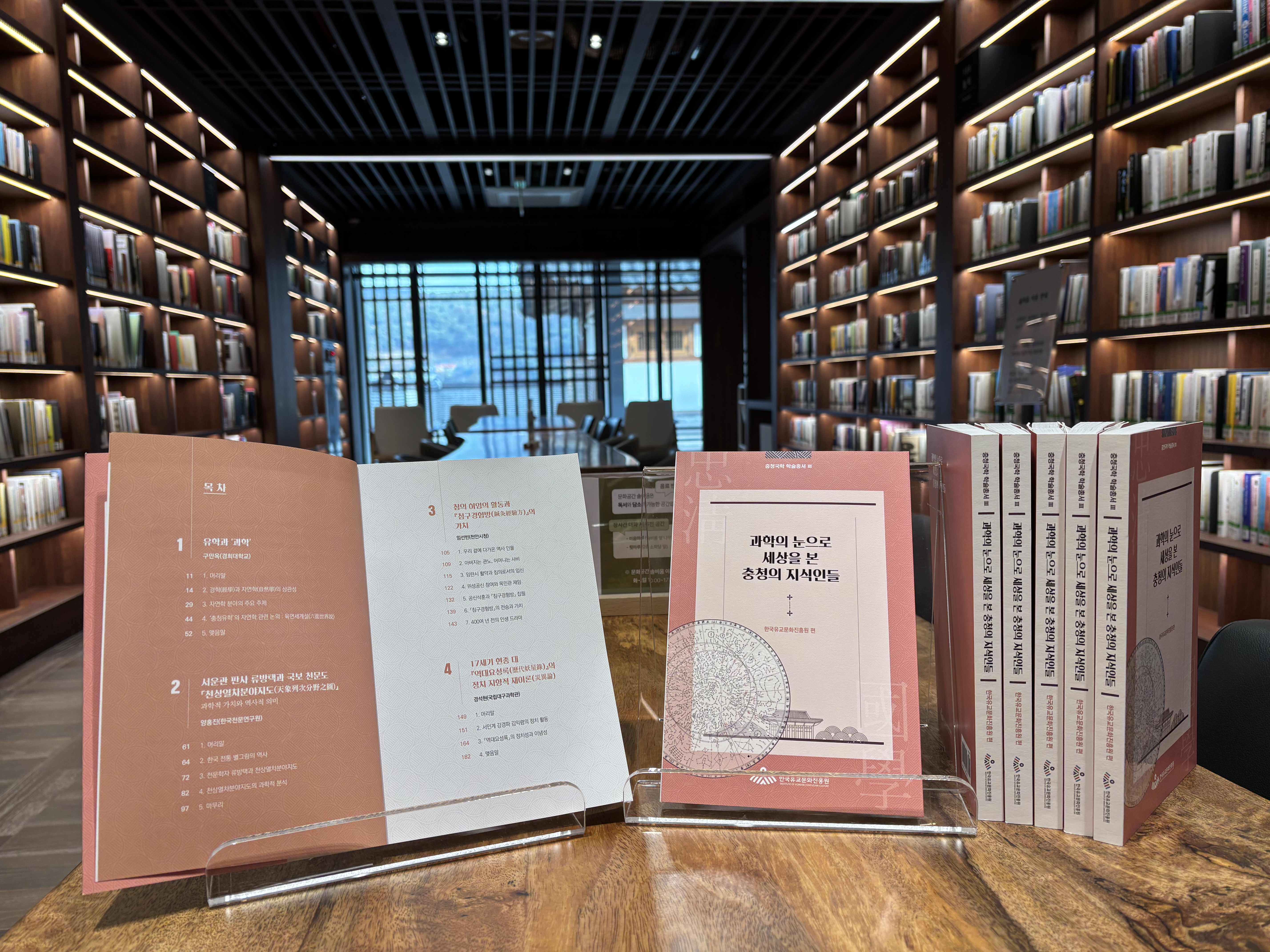 총서의 구성은 충청유학의 자연학적 논의를 다룬 △경희대 구만옥 교수의 “유학과 과학”을 시작으로, 「천상열차분야지도」의 과학적 가치를 다룬 △한국천문연구원 양홍진 센터장의 “서운관 판사 류방택과 국보천문도 「천상열차분야지도」”, 김익렴 '역대요성록'에 드러난 정치성과 이념성을 다룬 △국립대구과학관 경석현 선임연구원의 “17세기 현종 대 『역대요성록』의 정치 지향적 재이론(災異論)”, 홍대용의 ‘우주설과 자연인식’ 에 관한 연구사적 검토를 진행한 △한양대 김용헌 교수의 “‘홍대용의 우주설과 자연인식’에 대한 이해 방식의 변화” 가 수록되어 있다.