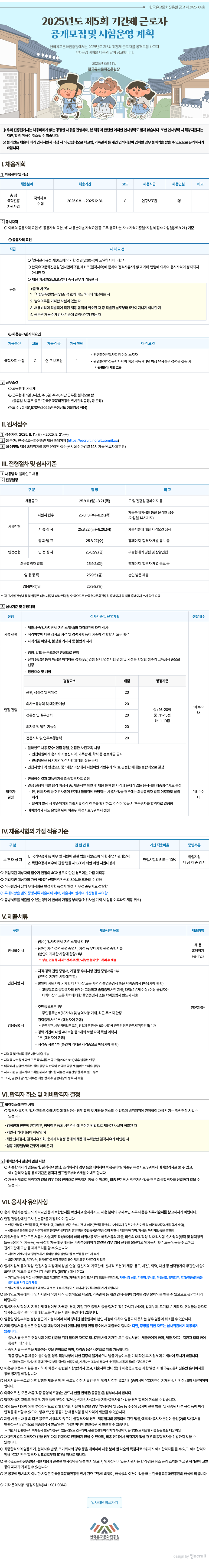 2025년도 제5회 직원 공개모집 및 시험운영 계획
